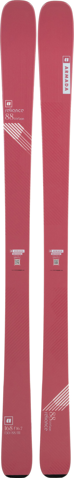 lyže ARMADA RELIANCE 88 C Délka lyží (cm): 176 Dlouho očekáváná letošní novinka pěkně doplňuje zbrusu novou sérii dámských lyží Reliance, která navazuje na veleúspěch pánských Declivity. Kluci z Armada týmu si byli vědomi toho, že nabídka lyží pro něžné pohlaví všeobecně trochu pokulhává a proto se rozhodli s tím něco udělat. Výsledkem jsou lyže srovnatelné kvality i parametrů. Reliance 88 Ca je navržena s jediným cílem, maximálně zpříjemnit jízdu v resortu i mimo něj, za jakýchkoliv podmínek. Hluboký rádius a karbonová vlákna Carbon Wowen Mesh zcela pokrývající super odlehčené Caruba Core perfektně zpracují energii z tvé jízdy a transformují ji do nebezpečně výbušné síly, která tě vypálí z oblouku do oblouku. Karbon, na rozdíl od titanalové výztuhy, není tak náročný na tvou fyzičku, je lépe ukočírovatelnější a při zachování identických jízdních vlastností si tak užiješ na svahu stejnou porci zábavy, ale s menším úsilím. AR100 Sidewall po celé délce a odolné hrany 2.1 All Mtn Edge dodávají lyži silný skus na seberozbitějším sněhu a ledu. Díky EST All Mtn Rockeru s mírně zúženou špičkou a camberem v patce se tyhle sjezdovkové speciálky nezaleknou ani čerstvého prašanu, s grácií proplují mezi stromečky a bez ztráty kytičky se vypořádají i s jarní břečkou. Kvalitní sintrovaná skluznice Comp Base obohacená o uhlíkové částečky skvěle jede, saje vosk a bude ti sloužit nejednu sezónu. Celou tuhle krásku korunuje originální grafika využívající efektu měnících se barev podle směru dopadajícího světla. Flex lyže: špička 4; pod vázáním 6; patka 4. Parametry lyže při délce 152 cm: 126 / 88 / 108 mm, radius 15,7 m; 160 cm: 128 / 88 / 110 mm, radius 16,2 m; 168 cm: 130 / 88 / 111 mm, radius 16,7 m, 1 575 g; 176 cm: 131 / 88 / 112 mm, radius 17,2 m, 1 675 g.
